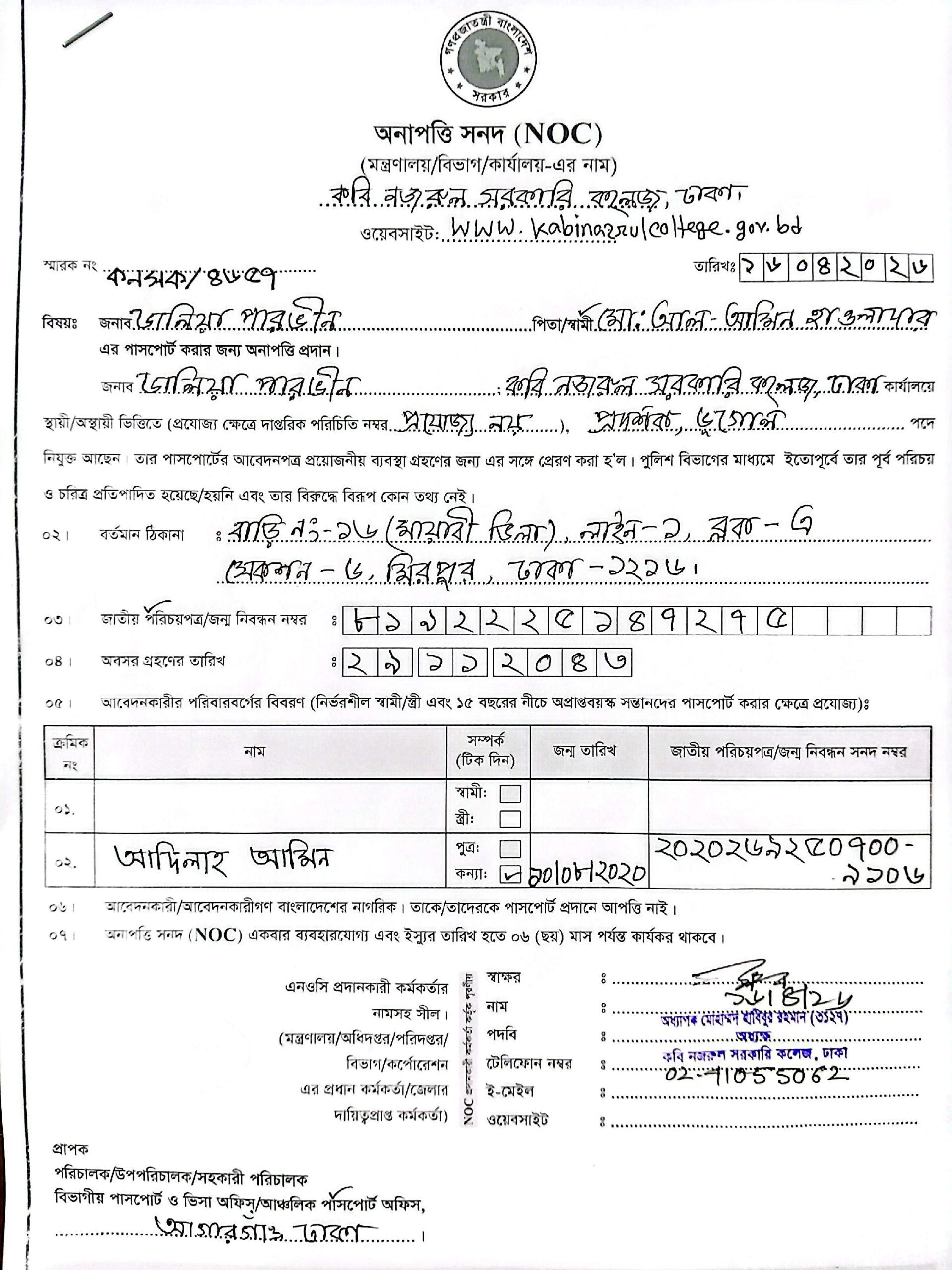 ডালিয়া পারভীন অনাপত্তি সনদ ১৬/০৪/২০২৬