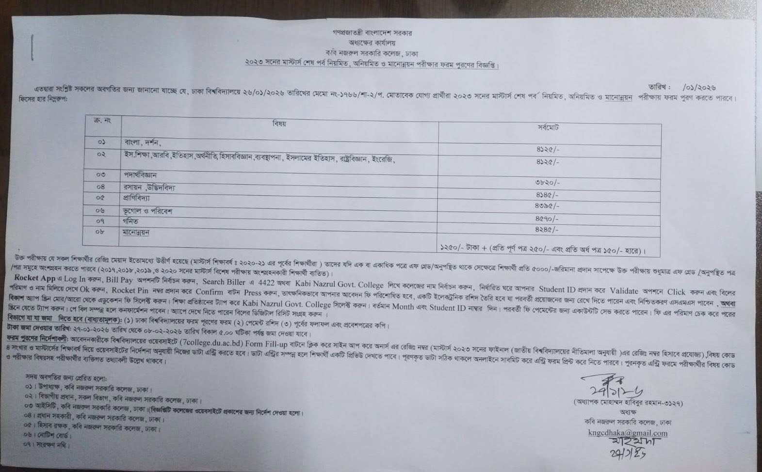 মাস্টার্স শেষ পর্ব ফরমপূরণের নোটিশ ২৯/০১/২০২৬