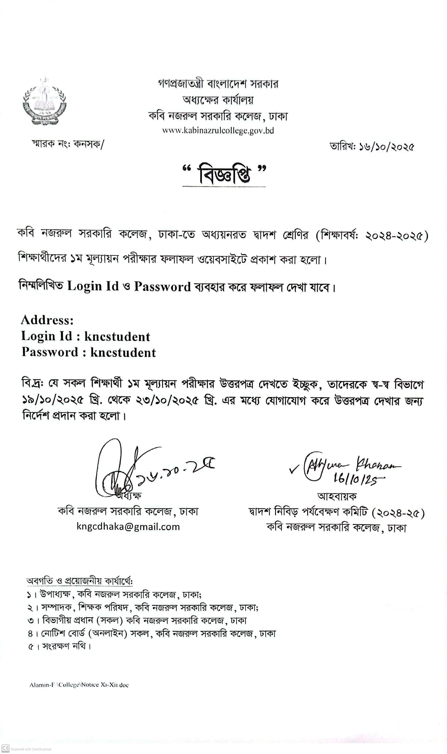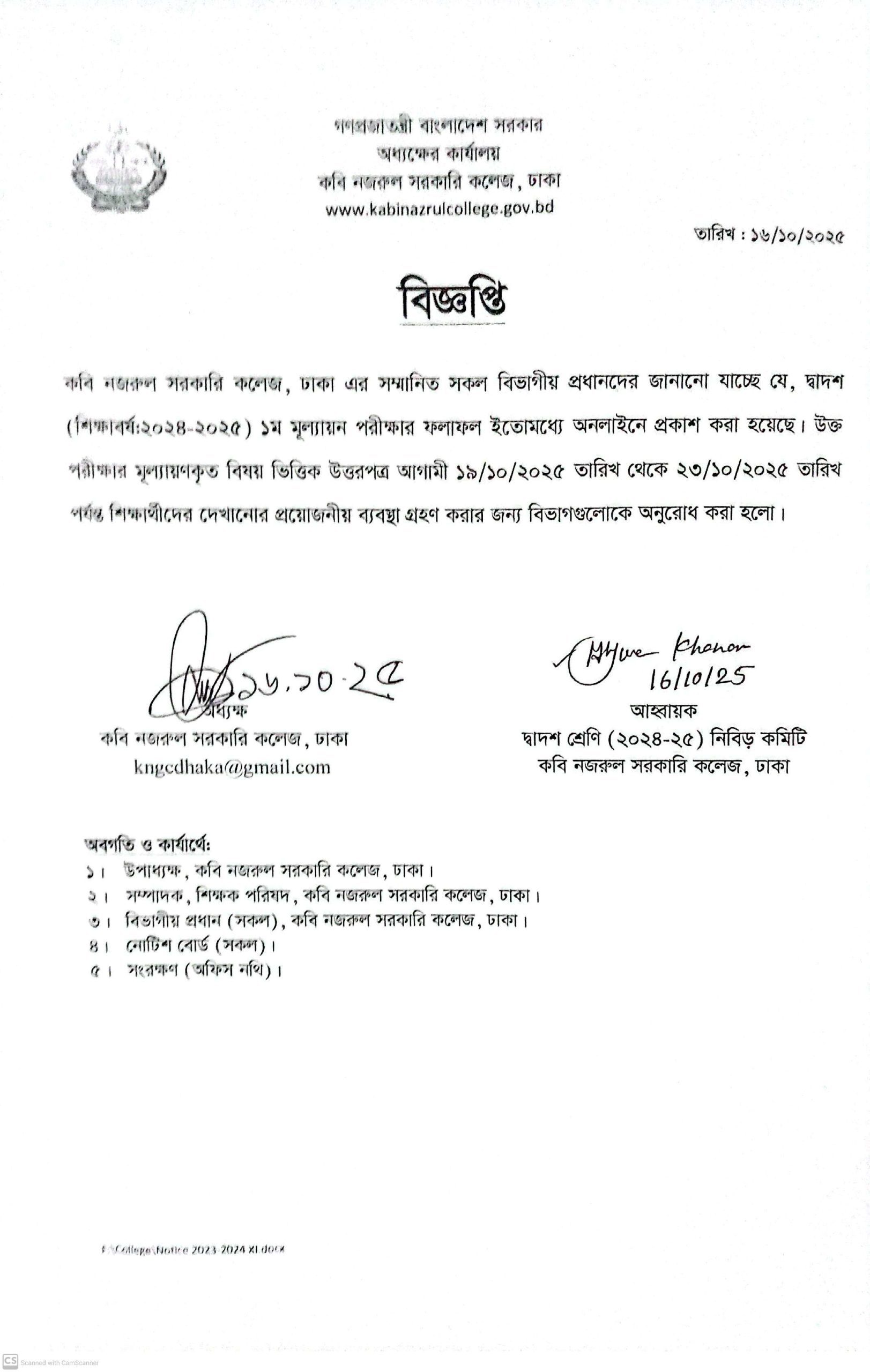 অনিবার্য কারণবশত আগামীকাল ২৮-১১-২০২৪ তারিখ বৃহস্পতিবার কবি নজরুল সরকারি কলেজ, ঢাকার সকল... |